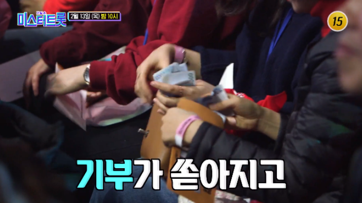 이번 본선 3차 미션은 바로 기부금 트롯에이드였는데요.