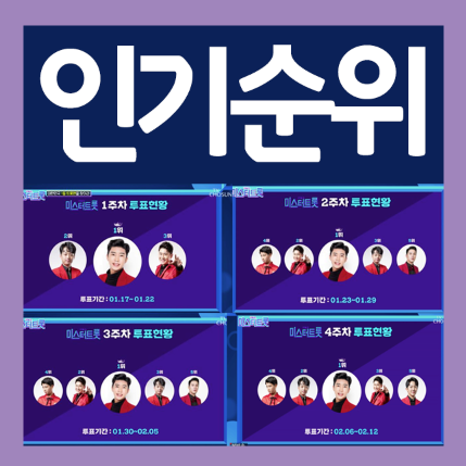 그럼 1주차부터 4주차까지 미스터트롯 인기순위를 지금부터 알려드리겠습니다.