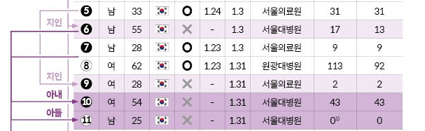 29번째 코로나 환자는 82세의 고령의 남성이였고, 오늘 확진판정을 받은 30번째 코로나 환자는 바로 그의 아내였습니다. 양성 판정을 받은 코로노환자였기에 함께 살고있는 아내를 코로나19 감염을 확인했더니 양성이 떠서 현재 서울대병원에 격리되어서 치료를 받고있습니다.