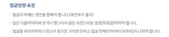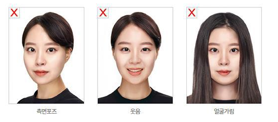여권 사진을 찍을때는 어깨와 얼굴이 똑바로 정면을 바라보고 있어야합니다. 측면포즈는 안되세요. 그리고 이를 보이면서 환하게 웃는 모습이거나 얼굴을 가린다면 이 또한 안됩니다. 자연스러운 미소 또는 무표정으로 촬여을 하셔야합니다.
