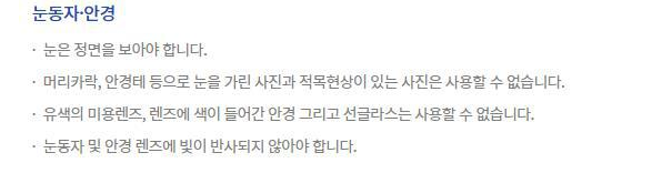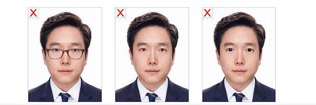 여권 사진을 찍을때는 안경을 착용하고 촬영을 해도되나 안경테가 눈동자를 가려서 안됩니다. 적목현상이 난 사진이거나 미용렌즈를 껴 눈동자가 더욱 크게 나올 경우에도 나중에 문제가 발생할수있기에 꼭 일반 투명 콘택트렌즈를 착용하셔야합니다.
