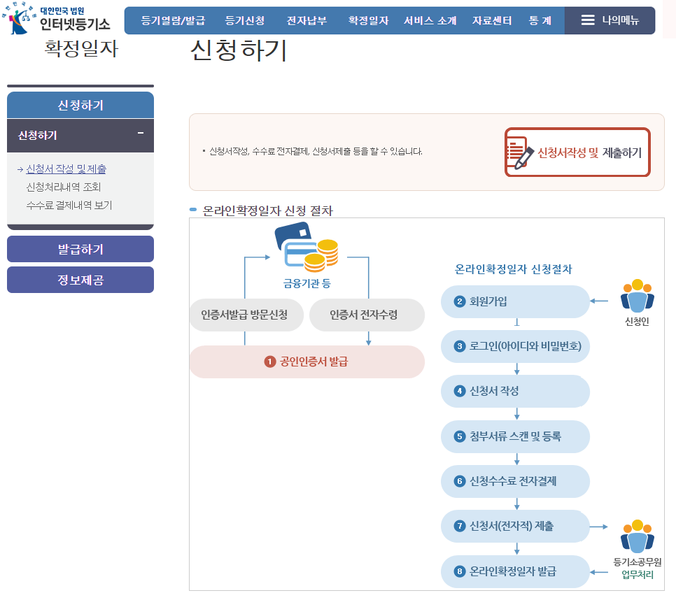 인터넷 등기소 확정일자 받는법