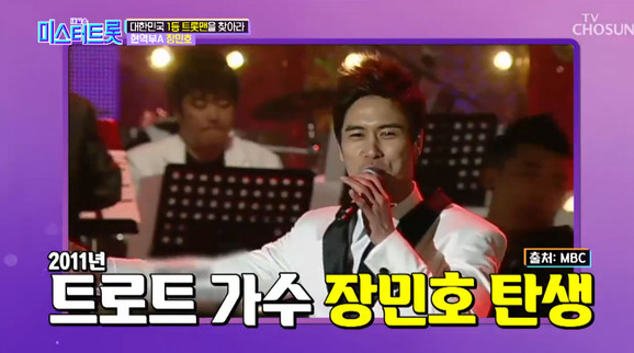 하지만 그 이후 꽃미남 트로트 가수로 유명해져 트로트 앨범도 잘돼서 어머님들의 사랑을 듬뿍 받아 등장만 했다 하면 일명 아줌마 부대를 끌고 다니는 인기 트로트 가수가 되어 여러 TV 프로그램과 해피투게더 지금 방영하는 미스터 트롯 장민호가 되었답니다.