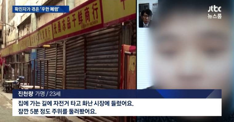 중국의 신종 코로나바이러스 23살의 확진자는 폐렴에 걸리기 전 약 5분 정도 화 난시장 주변에 들렸다고 합니다. 신종 코로나 바이러스는 사람 간 점염도 가능하기에 아마 위험한 공간이었을 거 같아요.