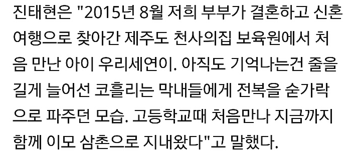 쉽지 않았을 결정인데 참 마음씨가 고운 부부네요. 엄마아 빠가되어 세연이게게 든든한 뒤가 되어주고싶었던 진태현 박시은 입양 이유도 정말 대단한거 같습니다.